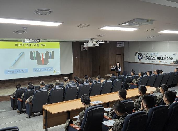 교육에서는 전입 신병 50여 명이 참여해 ▲금융 기초 상식 ▲재테크의 기초 ▲군 복무 재무설계 디자인(소득·지출 관리 및 급여 관리 계획) 등 재무역량 강화에 실질적으로 도움이 되는 내용을 배우며 큰 호응을 얻었다.