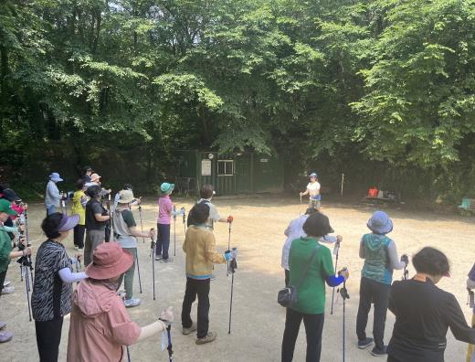 걷기 코스는 학령산 숲길 등 비교적 시원하고 그늘이 많은 장소를 중심으로 안전하게 걷기 운동을 실천할 수 있도록 구성했다. 특히, 등산 지팡이를 활용한 걷기 방식은 보행 안정성을 높이고 무릎 관절에 가해지는 부담을 줄이며 상체 근육까지 활용할 수 있어 전신운동 효과가 뛰어난 장점이 있다.