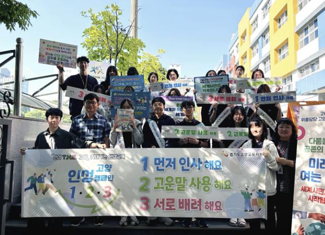 이번 캠페인은 고양교육지원청 인성브랜드 ‘인성 더(T.H.E.) 고양’을 기반으로, 학생들이 ‘1. 먼저 인사해요,2. 고운말 사용해요3. 서로 배려해요’를 실천하여 더욱 성숙한 인성을 함양하는 것을 목표로 한다.
