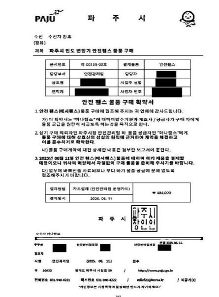 [무한뉴스=정승훈 기자] 파주시는 시청 공무원을 사칭한 물품구매 공문서를 적발한 사실을 공개하며 시민에게 주의를 당부했다.