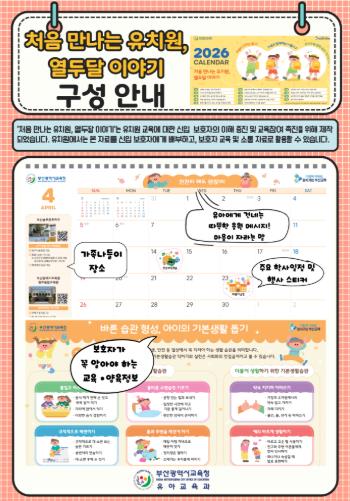 [무한뉴스=정승훈 기자] 부산광역시교육청은 2026학년도 유치원 입학을 앞둔 학부모들의 불안감을 해소하고 유치원 교육에 대한 이해를 돕기 위해 ‘처음 만나는 유치원, 열두 달 이야기’자료 12,500부를 제작해 유치원별로 배포한다고 24일 밝혔다.