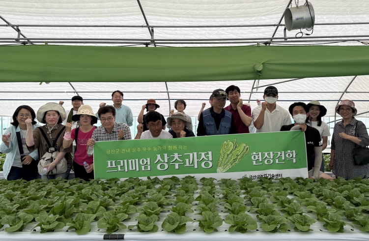 [무한뉴스=정민정 기자] 금산군은 지난 21일 스마트농업교육 교육생 20명을 대상으로 관내 청상추 토경재배, 포기상추 양액재배 우수 농가 현장 견학을 시행했다.
