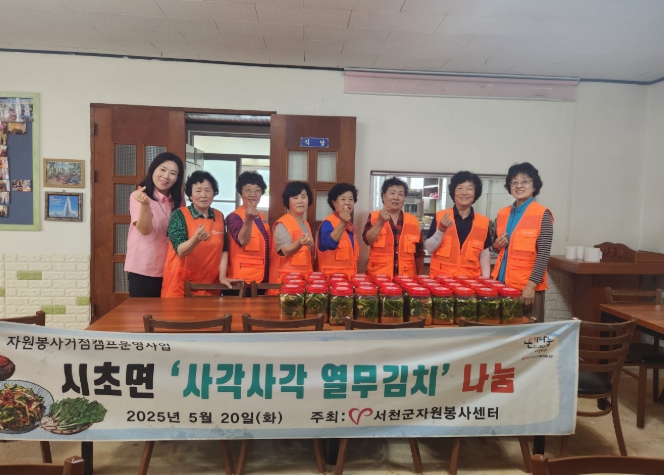 [무한뉴스=정민정 기자] 서천군 시초면자원봉사거점캠프는 지난 20일 시초면 신흥1리 교회에서 관내 독거 어르신 40가정에 열무김치를 전달하는 ‘사각사각 열무김치 나눔’ 사업을 진행했다.