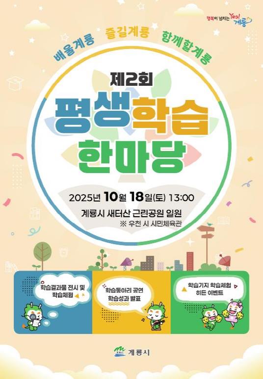 [무한뉴스=정민정 기자] 계룡시는 오는 18일 오후 1시부터 시청 앞 새터산 근린공원에서 시민이 주도하는 배움의 축제 “2025 제2회 계룡시 평생학습 한마당”을 개최한다고 밝혔다.