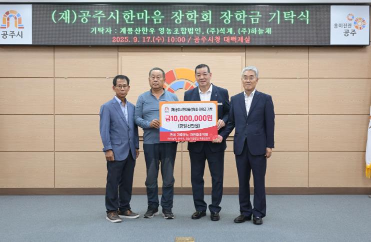 [무한뉴스=정민정 기자] 공주시 관내에서 가축분뇨 자원화 사업을 운영 중인 농업법인 3개소가 지난 17일 (재)공주시한마음장학회에 총 1천만 원의 장학금을 기탁했다.