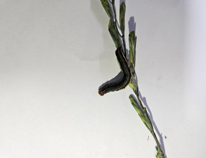 유충은 벼, 옥수수, 사료작물 등 화본과 작물의 잎과 줄기를 집중적으로 갉아먹으며, 식욕과 이동성이 강해 발생 후 2~3일 내에 큰 피해를 줄 수 있어 신속한 방제가 필수적이다.