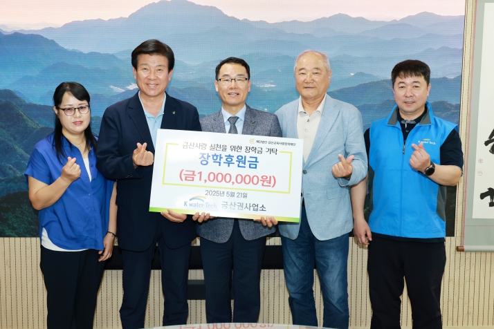 [무한뉴스=정민정 기자] 케이워터기술 금산권사업소는 지난 21일 금산군청 군수실에서 금산교육사랑장학재단에 장학기금 100만 원을 기탁했다.