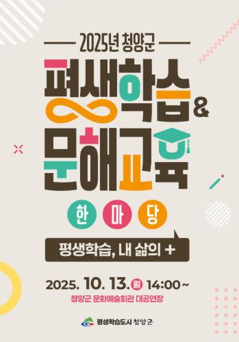 [무한뉴스=정민정 기자] 청양군은 오는 13일 오후 2시 청양군 문화예술회관 대공연장에서 군민 모두가 함께 배우고 즐기는 축제, ‘2025 평생학습 & 문해교육 한마당’을 개최한다.
