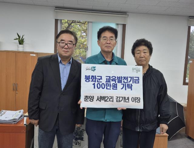한만희 춘양면장은 “지역 주민의 따뜻한 관심과 정성이 더해져 교육발전기금이 더욱 뜻깊게 사용될 수 있도록 노력하겠다.”며 “기탁해 주신 김기년 이장님께 깊은 감사의 말씀을 전한다.”라고 말했다.