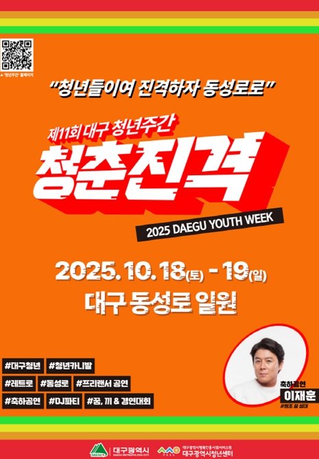 [무한뉴스=최진수 기자] 대구광역시는 10월 18일부터 19일까지 이틀간, 동성로 일대(CGV대구한일~동성로28아트스퀘어~구 중앙파출소)에서 ‘2025 대구청년주간’을 개최한다.