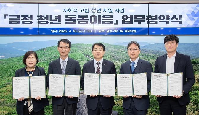 [무한뉴스=최진수 기자] 부산시 금정구는 2025년 4월 18일, 사회적 고립 청년의 체계적이고 통합적인 지원을 위해 부산광역시사회서비스원, 금정구종합사회복지관, 남광종합사회복지관, 금정구 정신건강복지센터와 '금정 청년 돌봄 이음' 업무협약을 체결했다.