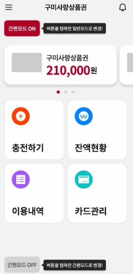 | ▲ 구미사랑상품권 앱 간편모드 |
