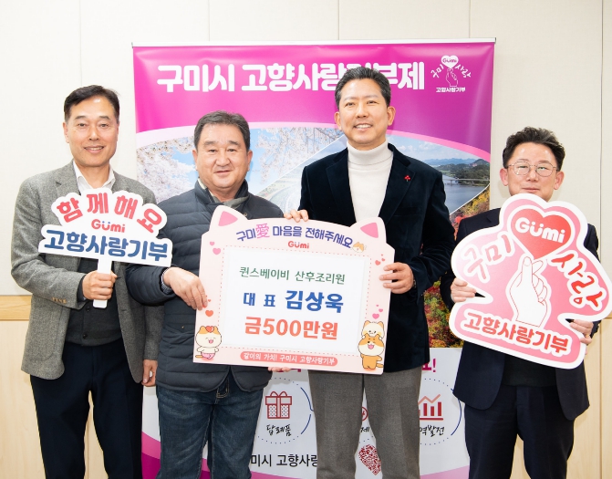 김장호 구미시장은 “새해 첫날부터 이어진 선한 기부가 고향사랑기부제 확산의 출발점이 될 것”이라며 “기탁금은 지역 발전과 시민 삶의 질을 높이는 데 의미 있게 사용하겠다”고 밝혔다.