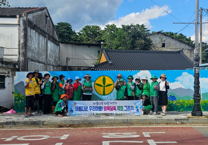 벽화 그리기에는 하늘벽화봉사단(단장 김용환)을 비롯해 창녕군새마을회, 회원단체장, 대지면새마을부녀회원, 지역 주민들이 힘을 보탰다.