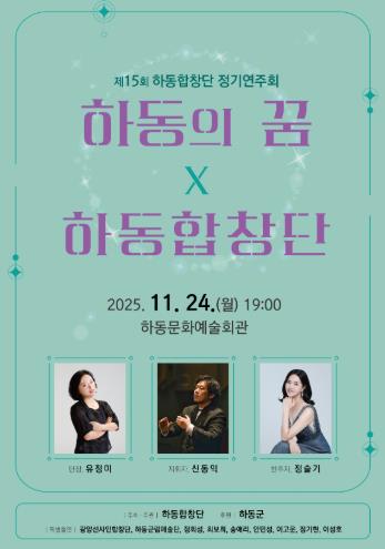 [무한뉴스=최진수 기자] 오는 11월 24일 저녁 7시, 하동문화예술회관 대공연장에서 ‘제15회 하동합창단 정기연주회’가 열린다.