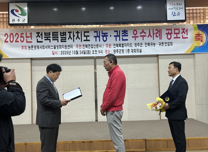 [무한뉴스=정민정 기자] 고창군 귀농인인 오세훈씨(57)가 지난 24일 열린 ‘2025 전북 귀농귀촌 우수사례 공모전’에서 우수상을 수상했다.