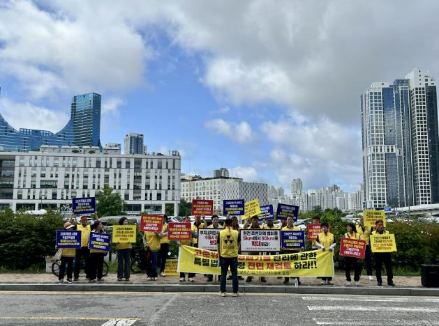 이는 지난 7월24일 한빛원전 앞 궐기대회에 이은 행동으로, 범대위는 이날 산업부를 향해 입법예고중인 ‘고준위방사성폐기물 관리에 관한 특별법 시행령(안)’의 즉각적인 개정을 촉구했다.