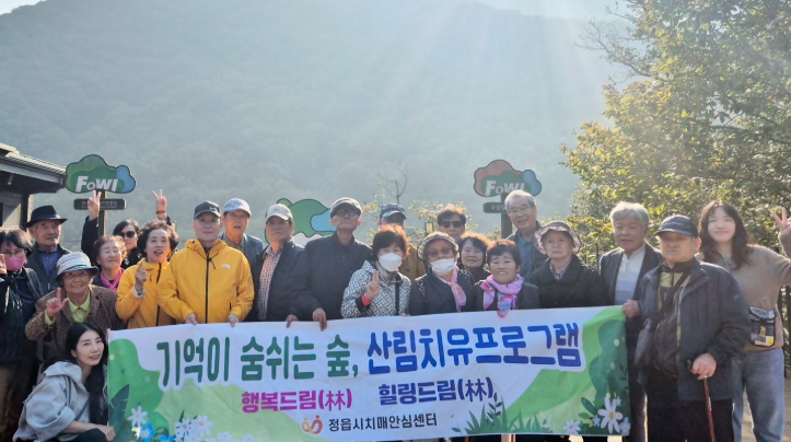 [무한뉴스=정민정 기자] 정읍시 치매안심센터가 지난달 31일 치매 환자와 그 가족 25여 명을 대상으로 산림치유프로그램 ‘기억이 쉼쉬는 숲’을 운영했다.