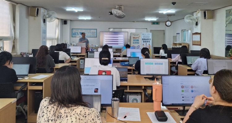 ‘챗GPT 활용 취업특강’은 회계사무원 및 실버케어 사회복지실무자 과정 교육생 35명을 대상으로 진행됐으며, 인공지능 도구를 활용한 자기소개서 작성과 면접 준비 등 실습 중심의 교육을 통해 디지털 도구 활용 능력을 높이고, 변화하는 채용 환경에 효과적으로 대응할 수 있도록 지원했다.