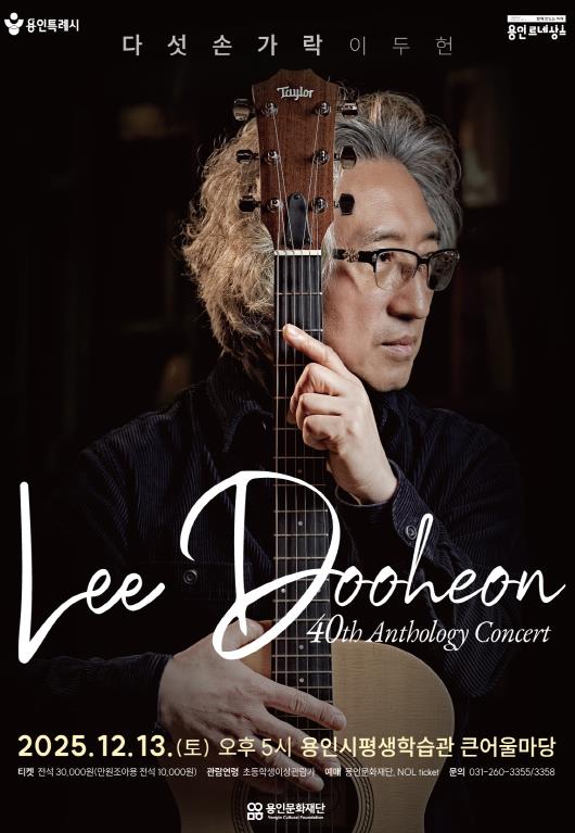 [무한뉴스=정윤식 기자] (재)용인문화재단은 오는 12월 13일 오후 5시, 용인시평생학습관 큰어울마당에서 ‘다섯손가락 이두헌 40th Anthology Concert’를 개최한다.