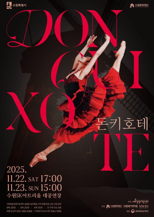 수원문화재단 관계자는 “M발레단의 '돈키호테'는 스페인의 정열과 고전 발레의 매력을 동시에 느낄 수 있는 작품”이라며 “남녀노소 누구나 즐길 수 있는 작품인 만큼 많은 시민의 관심과 참여를 기대한다”고 전했다.