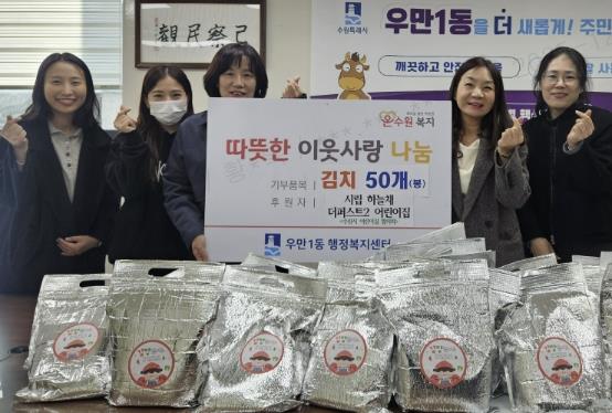 이번에 기부된 김장은 우만1동 내 기초생활수급자와 사례관리 대상자 등 어려운 주민들에게 전달돼, 추운 겨울날 따뜻한 나눔의 손길이 될 예정이다.