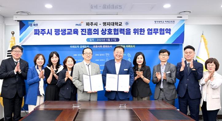 [무한뉴스=정승훈 기자] 파주시와 명지대학교가 평생교육 진흥 협력을 위한 업무협약(MOU)을 체결했다.
