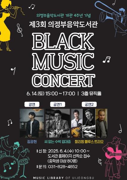 이희숙 도서관과장은 “시민들에게 의미있는 음악 경험을 제공하고자 의정부의 문화 자산인 블랙뮤직을 주제로 콘서트를 기획했다”며 “앞으로도 시민과 예술 전문가가 함께 만들어가는 지역 음악 플랫폼의 역할을 지속해 나가겠다”고 말했다.