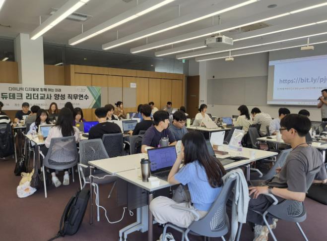 이번 연수는 지역 맞춤형 디지털 기반 수업 변화를 선도하는 그룹을 양성하기 위하여 교육발전특구 사업과 연계하여 운영됐으며 초중등 교원 54명의 리더교사를 대상으로 하이러닝, AI, 에듀테크 등 디지털 아카데미 핵심 역량 심화 과정으로 총 30시간이 운영됐다.