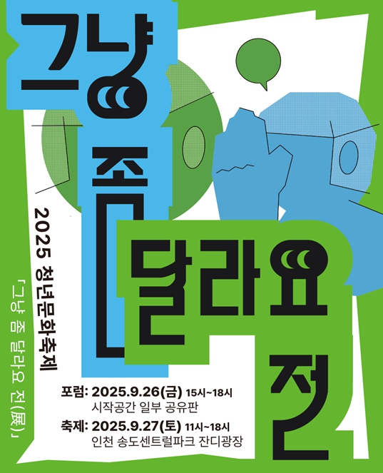 포럼 다음날 진행되는 ‘2025 청년문화축제 '그냥 좀 달라요, 전(展)'’에서는 인천 청년 단체 부스, 공연, 각종 체험 프로그램 및 플리마켓 등 다채로운 콘텐츠가 동시에 펼쳐지며, 축제명 ‘그냥 좀 달라요, 전’과 같이 청년만의 독창적인 감각과 에너지를 느낄 수 있는 프로그램을 준비했다.