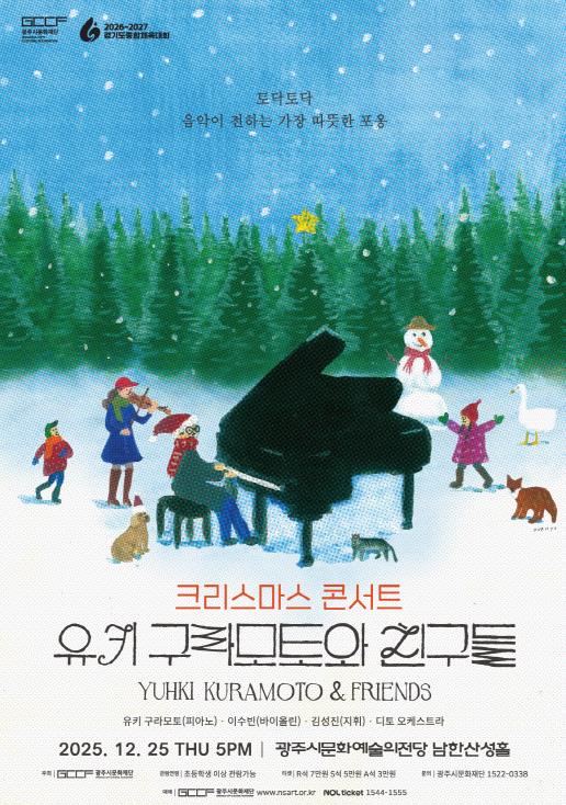 [무한뉴스=정승훈 기자] (재)광주시문화재단은 오는 12월 25일 오후 5시, 광주시문화예술의전당 남한산성홀에서 ‘2025 크리스마스 콘서트 '유키 구라모토와 친구들'을 개최한다.