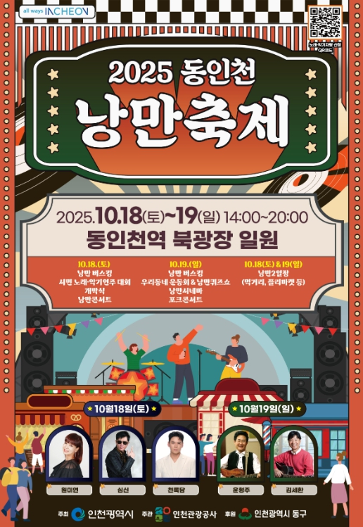 [무한뉴스=정승훈 기자] 인천광역시가 주최하고 인천관광공사가 주관하는‘2025 동인천 낭만축제’가 10월 18일부터 19일까지 동인천역 북광장에서 개최된다.