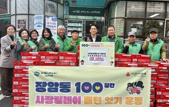 [무한뉴스=정승훈 기자] 의정부시 장암동주민센터는 1월 15일 장암동 새마을지도자협의회·새마을부녀회가 겨울철 어려운 이웃들을 위해 라면 100상자를 전달하며 ‘100일간 사랑릴레이 배턴 잇기’에 동참했다고 밝혔다.