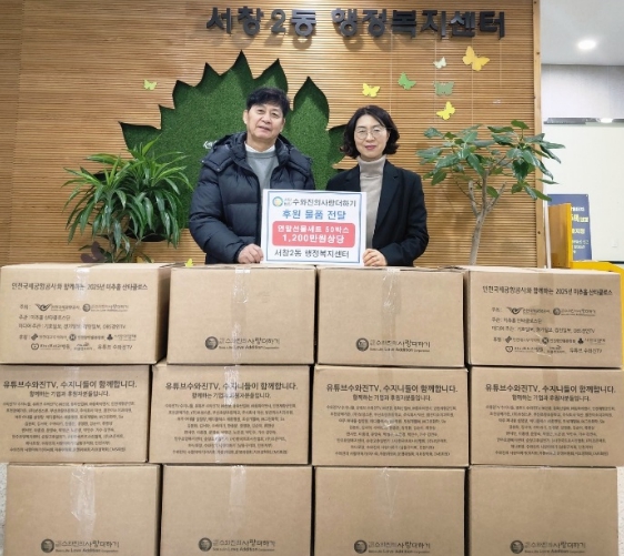 [무한뉴스=정승훈 기자] 인천시 남동구 서창2동 행정복지센터는 (사)수와진의 사랑더하기로부터 어려운 이웃을 위한 겨울 선물세트 50상자를 기부받았다고 19일 밝혔다.