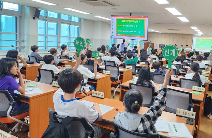 [무한뉴스=정민정 기자] 대전서부교육지원청은 6월 18일 유성초등학교 학생 의사당에서 관내 83개 초등학교 학생 대표들이 참여한 가운데 ‘2025학년도 제2회 서부 초등학교 학생의회’를 개최했다.