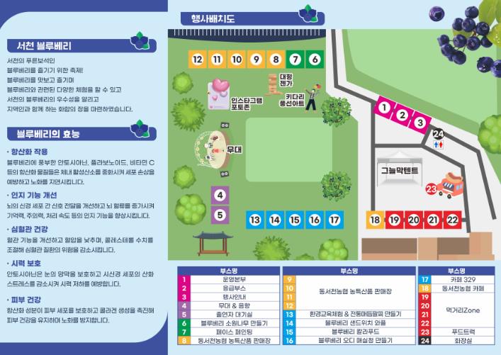 이와 함께 ▲블루베리 및 지역 농특산물 판매장 ▲먹거리 부스 및 푸드트럭 ▲팝업카페 ▲소원나무 만들기 등 다채로운 상시 프로그램도 마련된다.