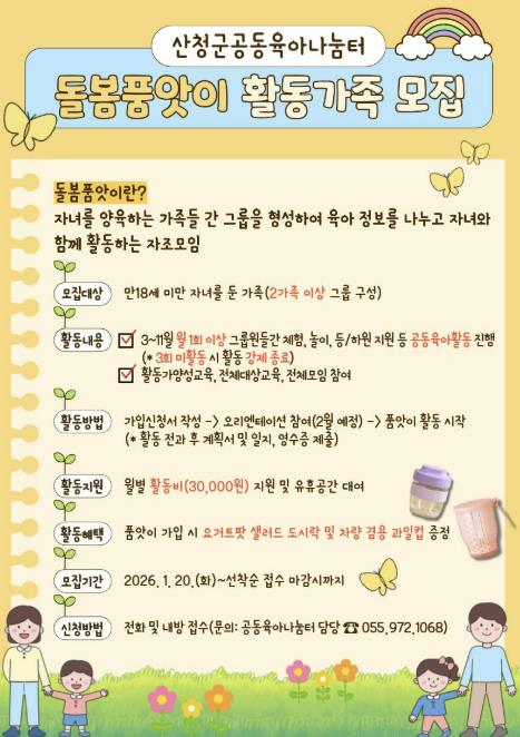 | ▲ 산청군가족센터, 돌봄품앗이 활동 가족 모집 |