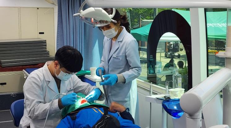 | ▲ 적극행정 사진-건강버스에서 치과진료중인 장애인 |