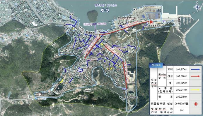 이에 총 450억 원(국비 320억)을 투입하여 낙후된 관로 개량(3km), 배수 펌프장 1개소 신설 등을 6월 착공한다.