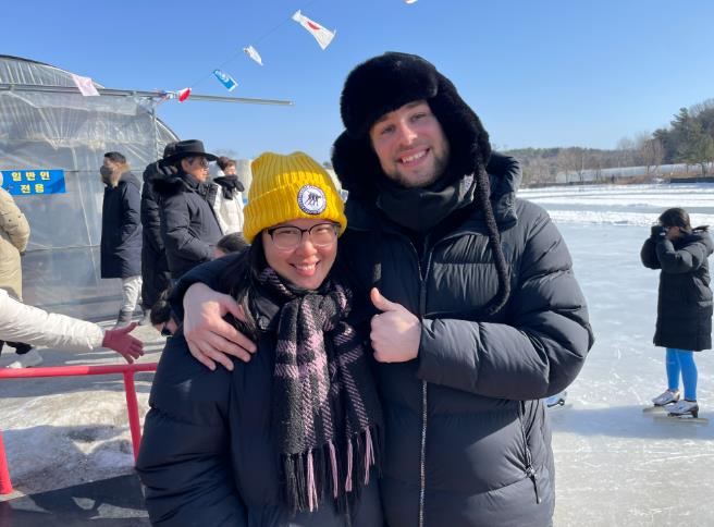 | ▲ 철원군 코치 추천 따라 찾은 철원…외국인 커플 ‘빙상 연습’ 눈길 |