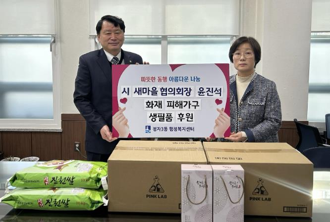 [무한뉴스=양현명 기자] 지난 23일, 윤진석 수원시 새마을협의회장이 최근 화재로 피해 입은 수원시 장안구 정자3동 주민을 돕기 위해 물품을 후원했다.