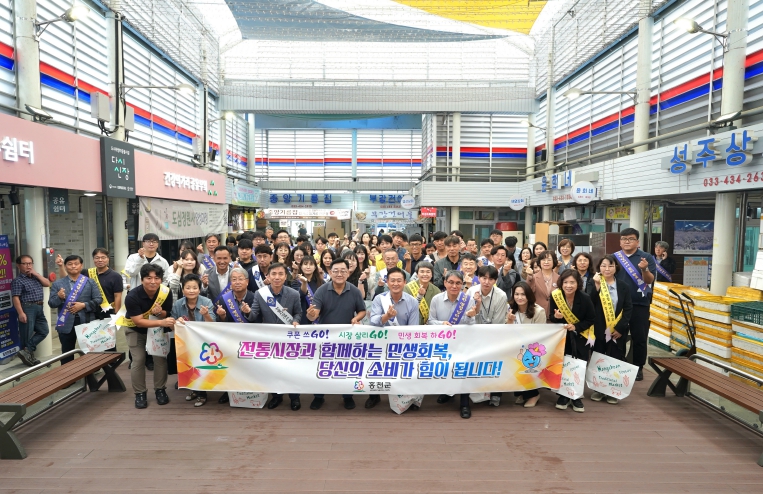 이번 캠페인은 추석을 앞두고 지역 주민들의 전통시장 이용을 장려하고, 소상공인의 매출 증대를 지원하기 위해 마련됐다. 특히, 홍천전통시장을 비롯한 골목상권에서 장보기 행사가 진행됐으며, 이어서 ‘각자 내기 오찬 행사’를 통해 소비쿠폰 사용을 생활 속에서 실천할 수 있도록 분위기를 조성했다.