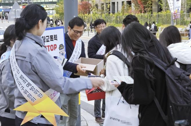 | ▲ 수원시 청소년 범죄예방위원 권선지구위원회, 학교폭력예방 캠페인 실시 |