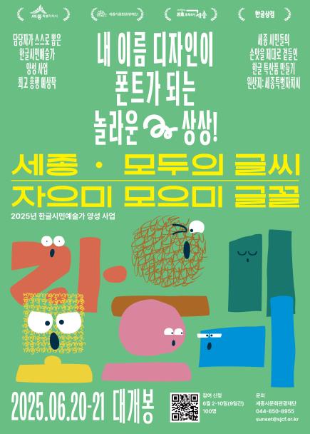 [무한뉴스=정민정 기자] 세종시문화관광재단은 한글시민예술가 양성사업 ‘자으미 모으미 글꼴’ 참가자 100명을 6월 2일부터 10일까지 누리집을 통해 선착순 모집한다고 밝혔다.