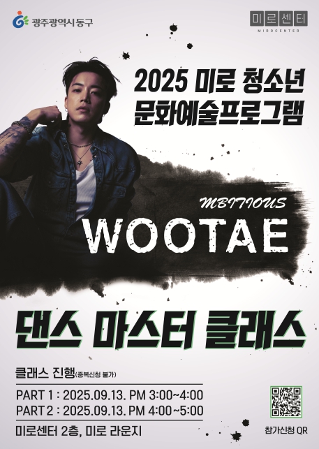 [무한뉴스=정민정 기자] 광주 동구는 오는 9월 13일 미로센터 2층 미로 라운지에서 열리는 2025 미로 청소년 문화예술프로그램 ‘댄스 마스터 클래스’에 참여할 청소년을 18일부터 모집한다고 밝혔다.