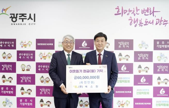 [무한뉴스=정승훈 기자] ㈜넥스틴 박태훈 대표와 ㈜복성산업개발 박금태 회장은 지난 28일 광주시청을 방문해 지역 내 어려운 이웃을 돕기 위한 성금과 성품을 기탁했다.