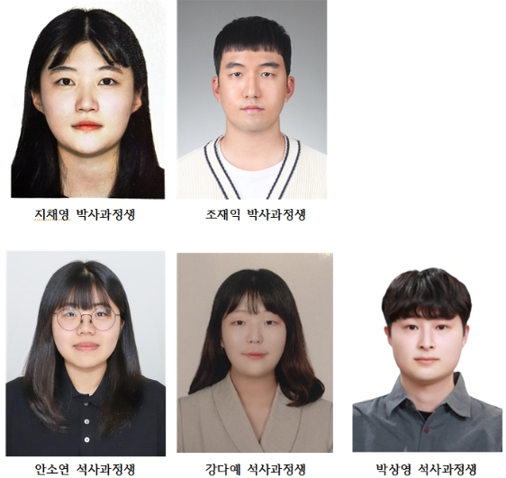| ▲ 윗줄 왼쪽부터 박사과정 지채영 씨, 조재익 씨, 석사과정 안소연 씨, 강다예 씨, 박상영 씨. |