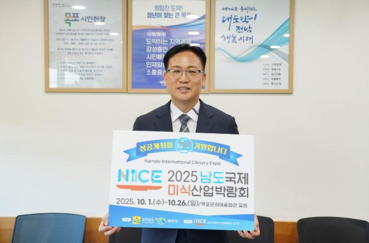[무한뉴스=정민정 기자] 목포시는 '2025 남도국제미식산업박람회'의 성공 개최를 기원하는 릴레이 응원 캠페인에 동참하며 전국적 붐업 분위기 확산에 나섰다.