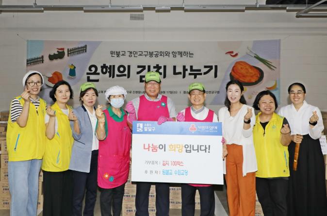 [무한뉴스=양현명 기자] 원불교 수원교당은 지난 17일, 수원시 팔달구(구청장 이상균)에 김치 100박스를 기부했다.