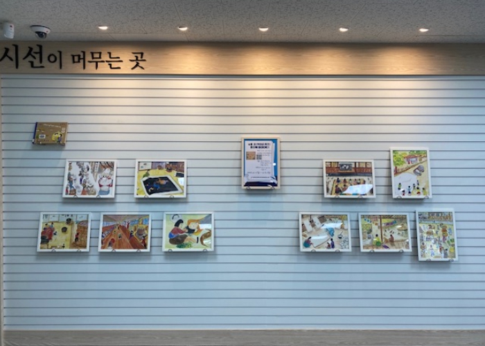 6월에는 이재연 작가의 “고향에서 놀던 때가 그립습니다: 그림으로 들려주는 할머니의 이야기” 그림책 원화가 오는 25일까지 도서관 1층 아트월에서 전시된다.